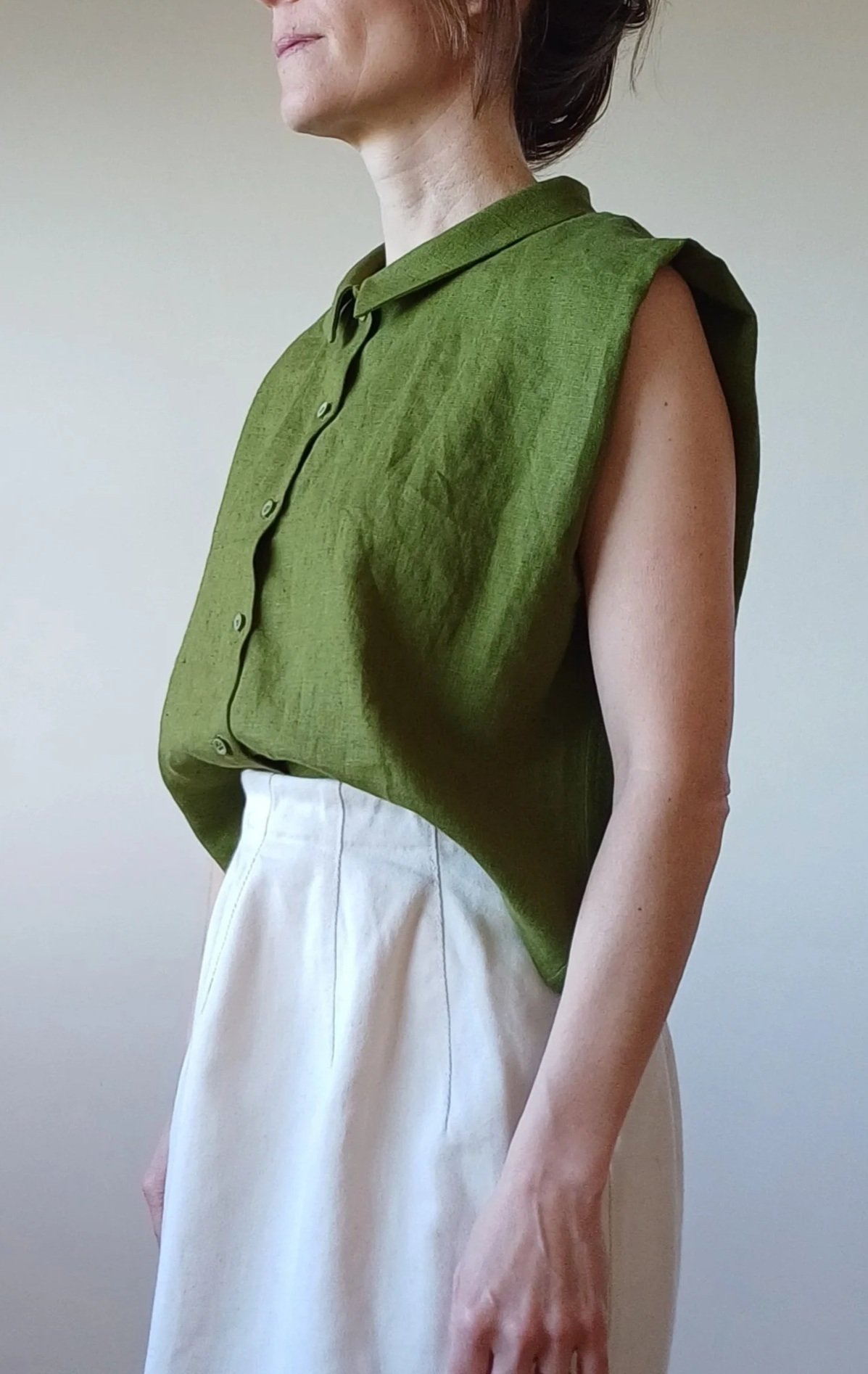 Materiaal: voor dit ontwerp vind ik linnen een sterke keuze omdat het heerlijk is om heel de dag rond je lijf te hebben. Eens je linnen gedragen hebt, ken je het verschil in gevoel :-).